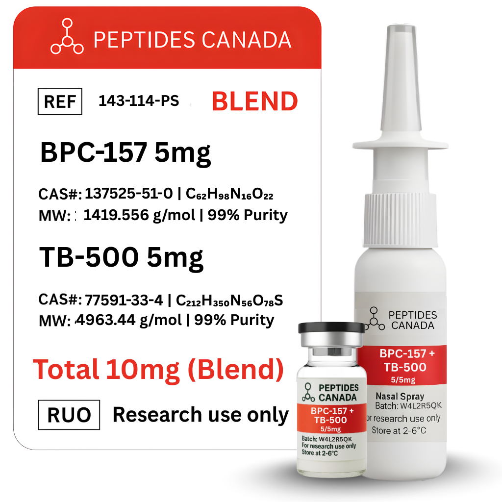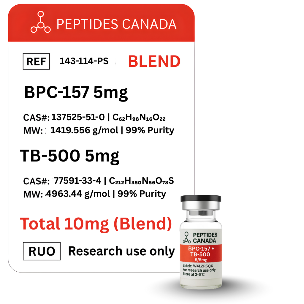The BPC-157 + TB-500 Blend is a dual-peptide formulation engineered to maximize the therapeutic potential of its individual components: Body Protection Compound-157 (BPC-157) and Thymosin Beta-4 (TB-500). This blend is designed to exploit the synergistic biochemical pathways of both peptides, focusing on accelerated tissue repair and enhanced recovery mechanisms.